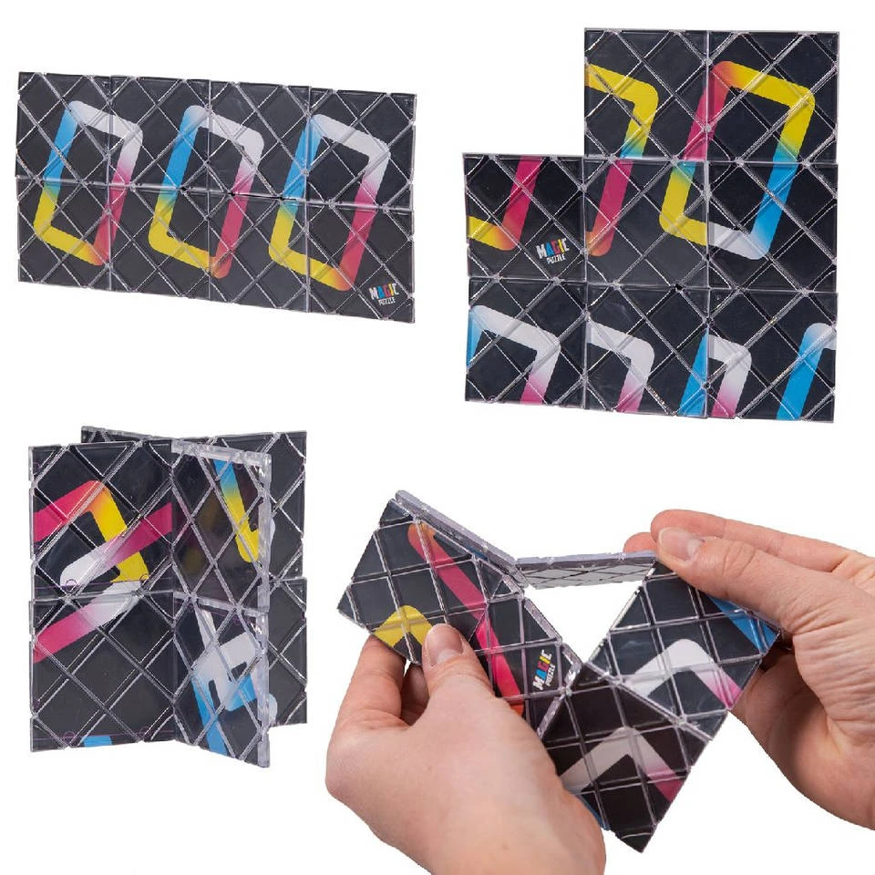 Deze leuke vouwpuzzel is een echte breinbreker! Vouw de puzzel op zo’n manier, dat de rechthoeken van de print helemaal in de war zijn. Nu is het de uitdaging, om de puzzel zo snel mogelijk weer in het originele patroon te puzzelen! Je kunt ook een nieuw patroon in elkaar puzzelen, waarin de 3 rechthoeken in elkaar vallen. Lukt het jou om dit voor elkaar te krijgen? Deze puzzel fidget wordt geleverd in windowbox.