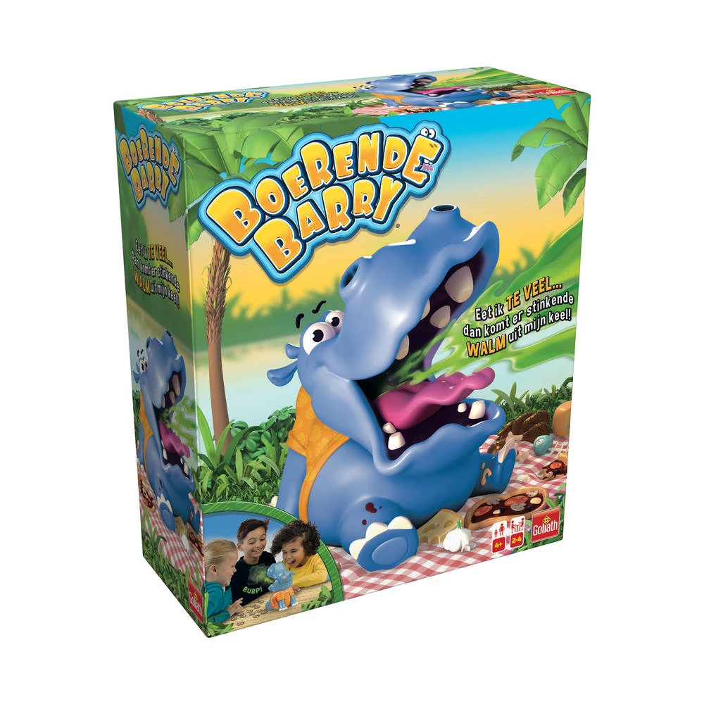 Bij dit leuke gezelschapsspel voeren jullie Barry rottend eten! Als jij degene bent die hem laat boeren ben je af! Kun jij z’n walm ontduiken?