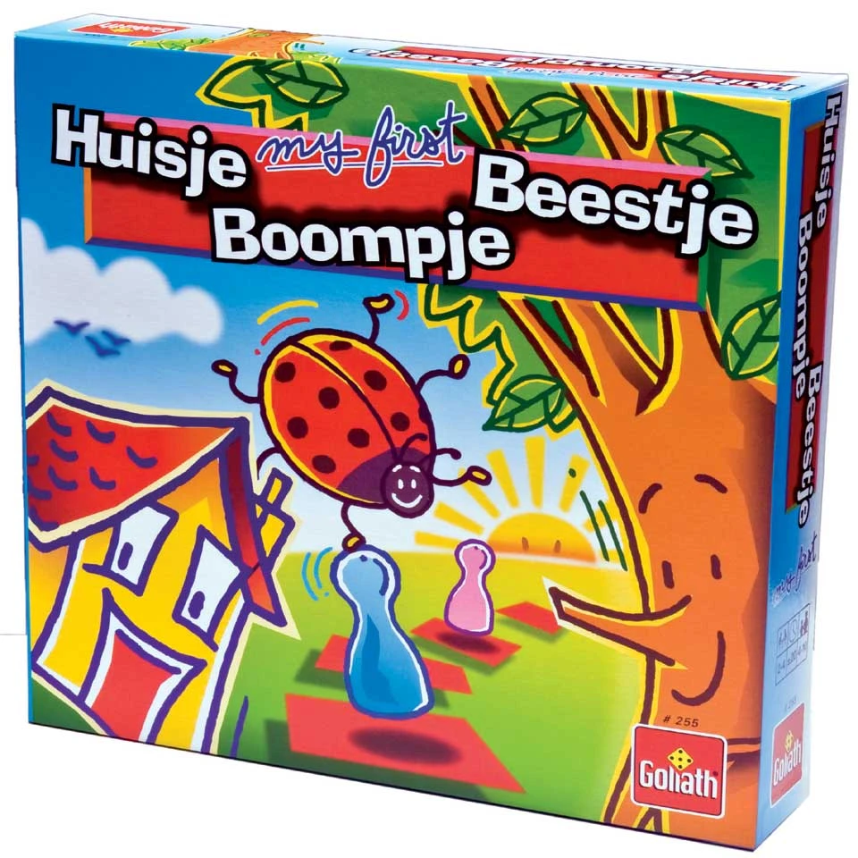 Probeer alle drie de pionnen zo snel mogelijk een complete ronde te laten maken. De dobbelsteen heeft drie mogelijkheden: huisje, boompje, beestje.