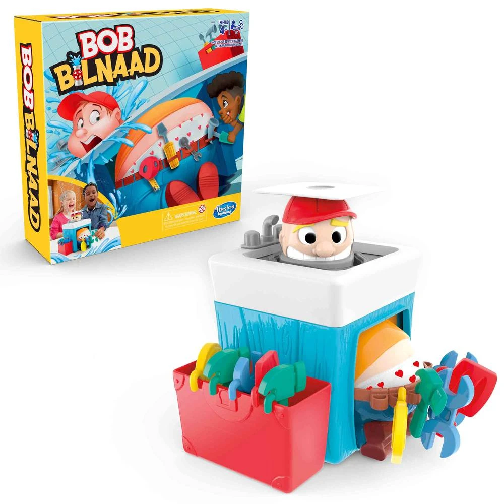 O nee, de loodgieter repareert een verstopping onder de gootsteen en er wordt hem een poets gebakken! Misschien zakt zijn broek wel af… en dat betekent dat iedereen nat wordt gesproeid! In het spel Bob Bilnaad kies je om de beurt een stuk gereedschap om aan de riem van Bob te hangen. Doe dit wel voorzichtig, want als de broek van Bob afzakt sproeit er water naar buiten en ben je af! De speler die als laatste overblijft wint het spel.