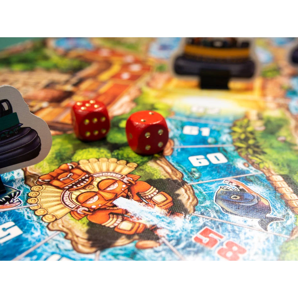 Als je het Jumbo Efteling Ganzenbord Pirana wildwaterspel speelt, beleef je keer op keer een nieuw avontuur. Een wilde rivier neemt je mee langs watervallen, draaikolken en rotsen. De stroomversnelling bepaalt je route in dit spetterende avontuur. Pas tijdens het spelen op voor de waterspuwende Inca-goden!