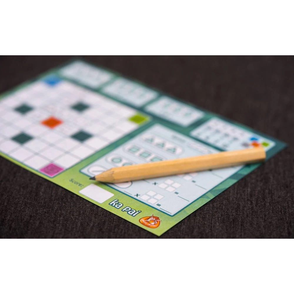 Speel dit leuke Ka Pai dobbelspel. Gooi de dobbelstenen en teken de symbolen voor de verschillende MΔori-stammen op je blad. Door deze symbolen slim te plaatsen kun je totems met elkaar verbinden. Maak groepen met drie symbolen om (bonus)punten te scoren. Ka Pai is een vlot spel en kent geen beurten. Iedereen moet de symbolen van de worp tekenen. Lukt het om je blad zo in te vullen dat je de meeste punten scoort?