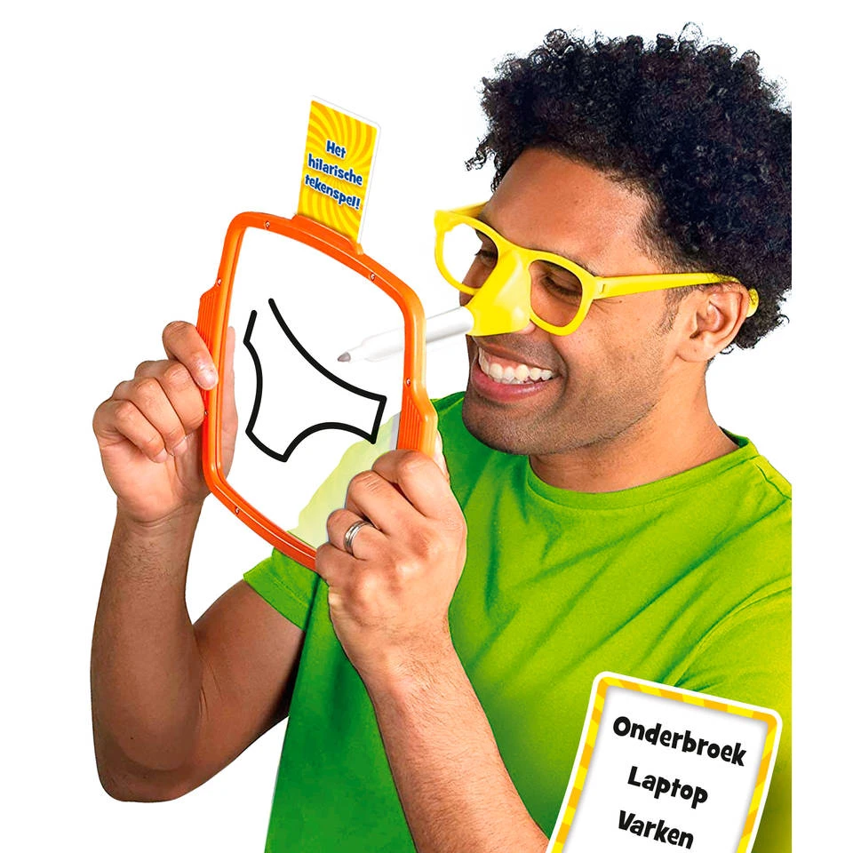 TekenNeus, een gezelschapsspel met TekenNeus bril en uitwisbaar bord! Hoe goed kun jij tekenen met je neus?