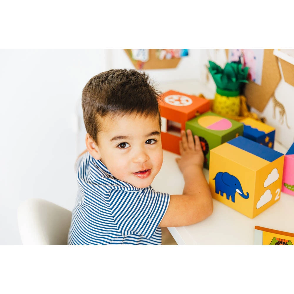 Deze zoo-dieren spelen graag verstoppertje! Kan jij spotten waar deze ondeugende dieren zich verbergen? Kies een uitdaging en probeer de blokken te stapelen zoals op de speelkaart. Oefen taal en leer over kleuren, dieren en ruimtelijke concepten zoals op en onder of in en uit. Dit leerzame spel is gemaakt uit kwalitatief, duurzaam karton en is makkelijk op te bergen en overal met je mee te nemen.